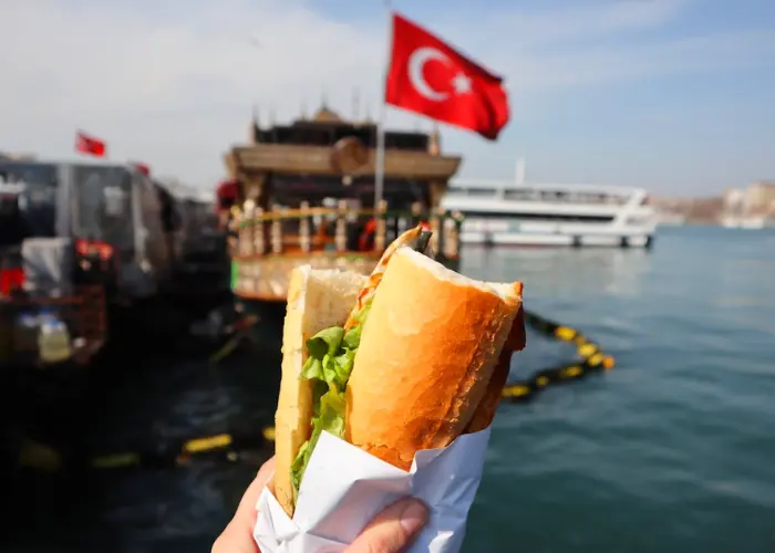 Few foods are as closely associated with Istanbul as balık ekmek, a grilled fish sandwich typically served near the waterfront in Eminönü. Fresh mackerel is grilled on the spot, tucked into crusty bread, and topped with onions and lettuce.