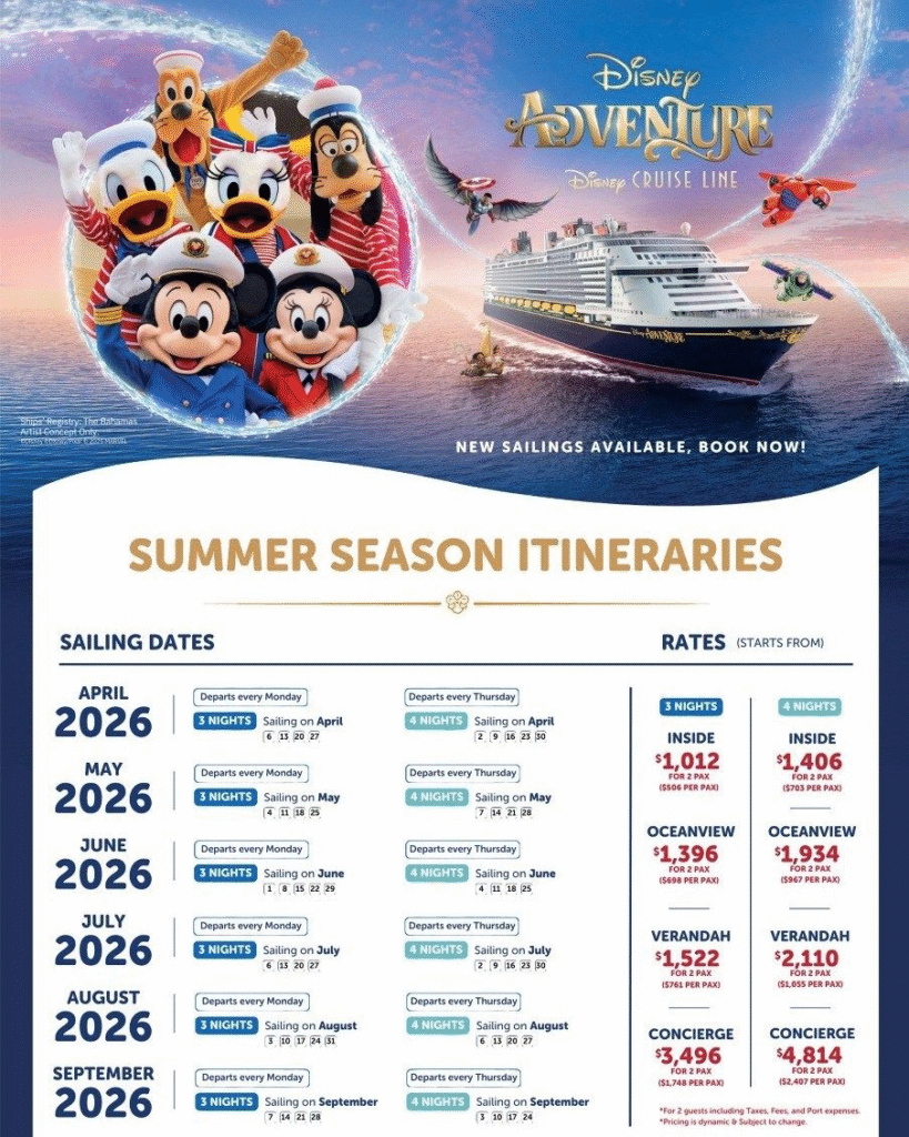 This article is intended for informational purposes only and reflects typical offerings and experiences for Disney Cruise Line and Royal Caribbean International. Cruise itineraries, features, entertainment, and pricing are subject to change. Always consult the official websites or contact the cruise lines directly before booking to verify current details and policies.