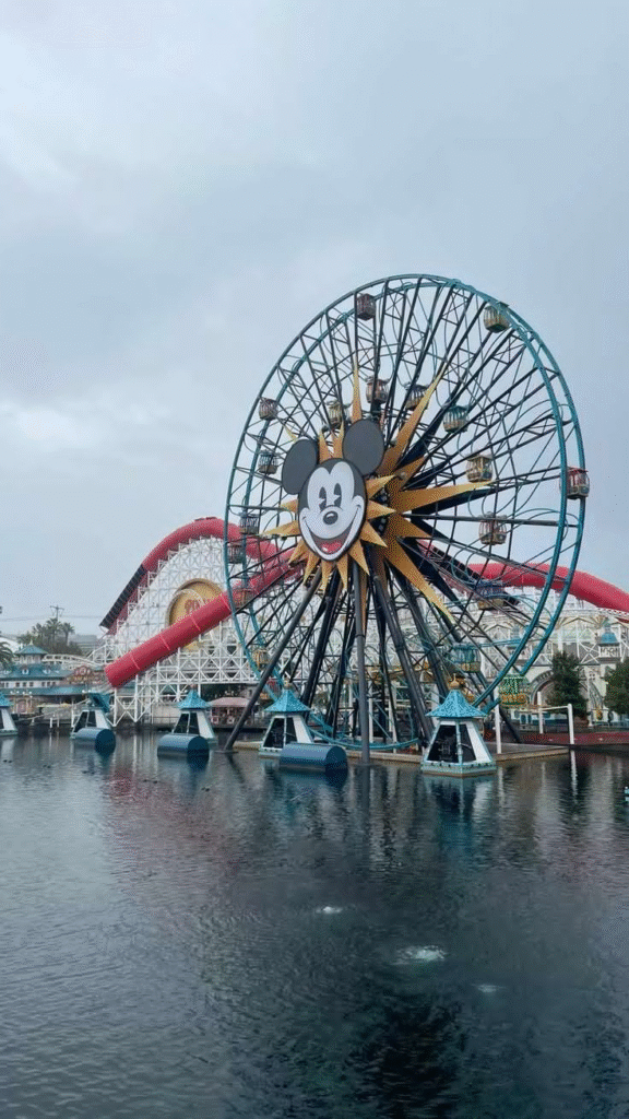In contrast, Disney California Adventure Park offers a more modern vibe. Its design celebrates California culture, Pixar storytelling, and high-energy experiences. The entrance area feels more contemporary, and the lands inside reflect newer franchises and updated theming.