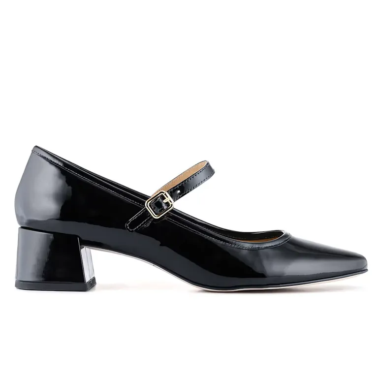 Leather Patent Block Heel Mary Jane Shoes