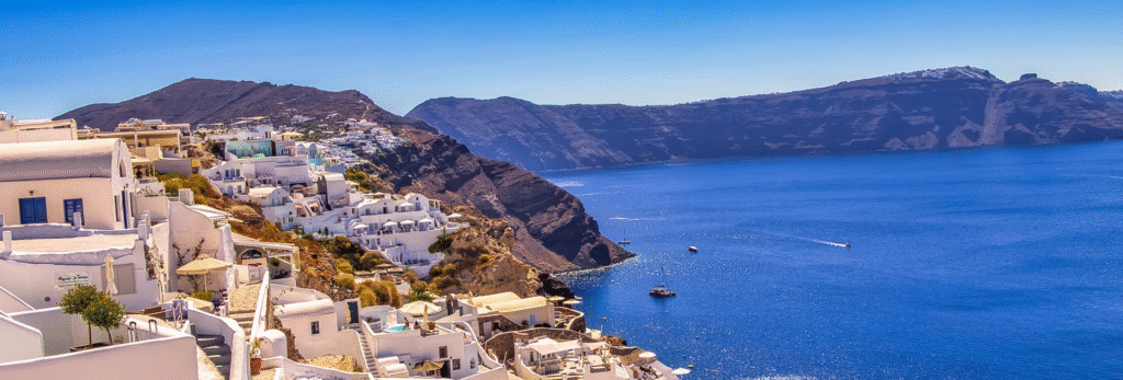 The island of Santorini is famous for its dramatic cliffs, whitewashed buildings, and breathtaking sunsets over the Aegean Sea. Formed by a volcanic eruption thousands of years ago, the island’s unique landscape attracts travelers from around the world.