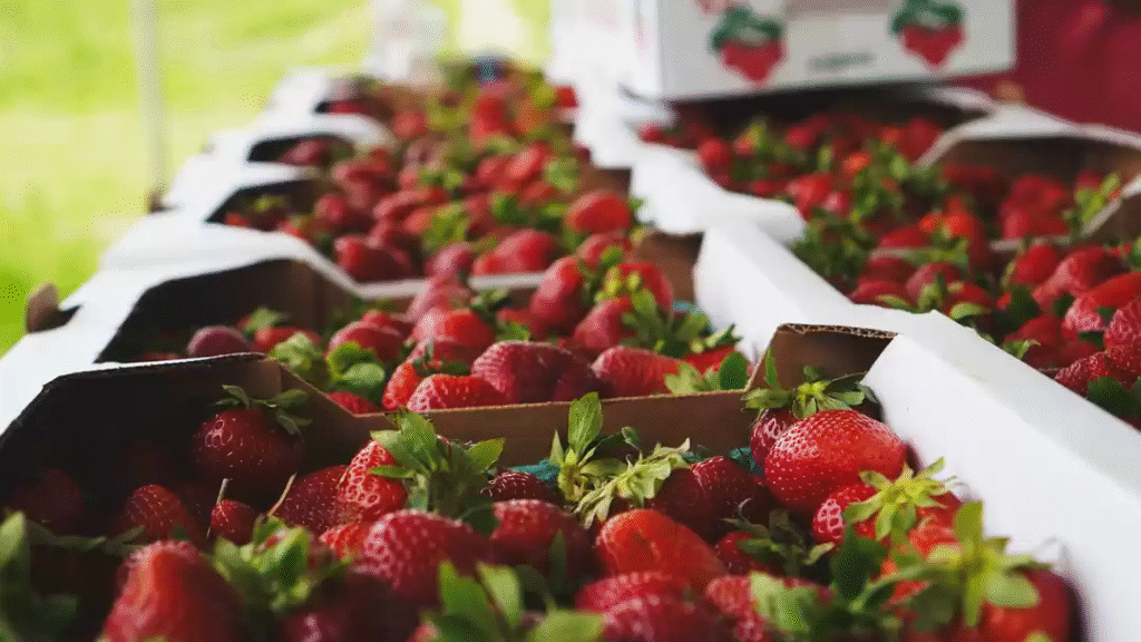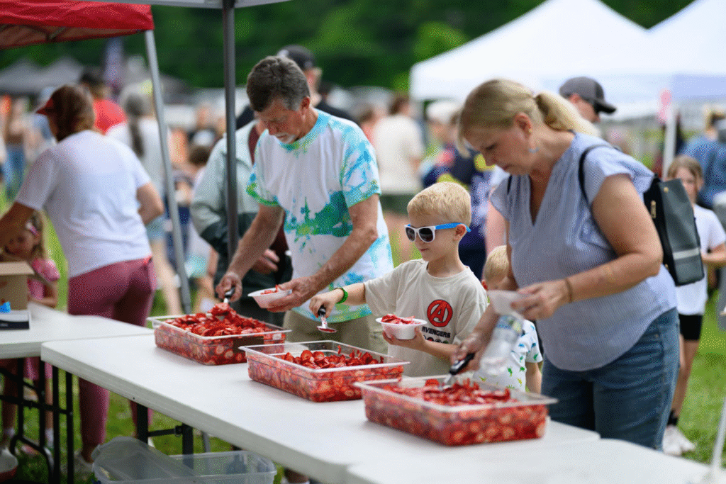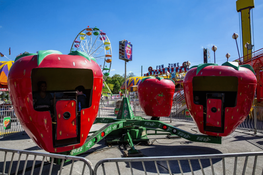 Beyond strawberries, visitors can also enjoy a wide range of fair foods, including corn dogs, funnel cakes, barbecue, and other festival favorites.